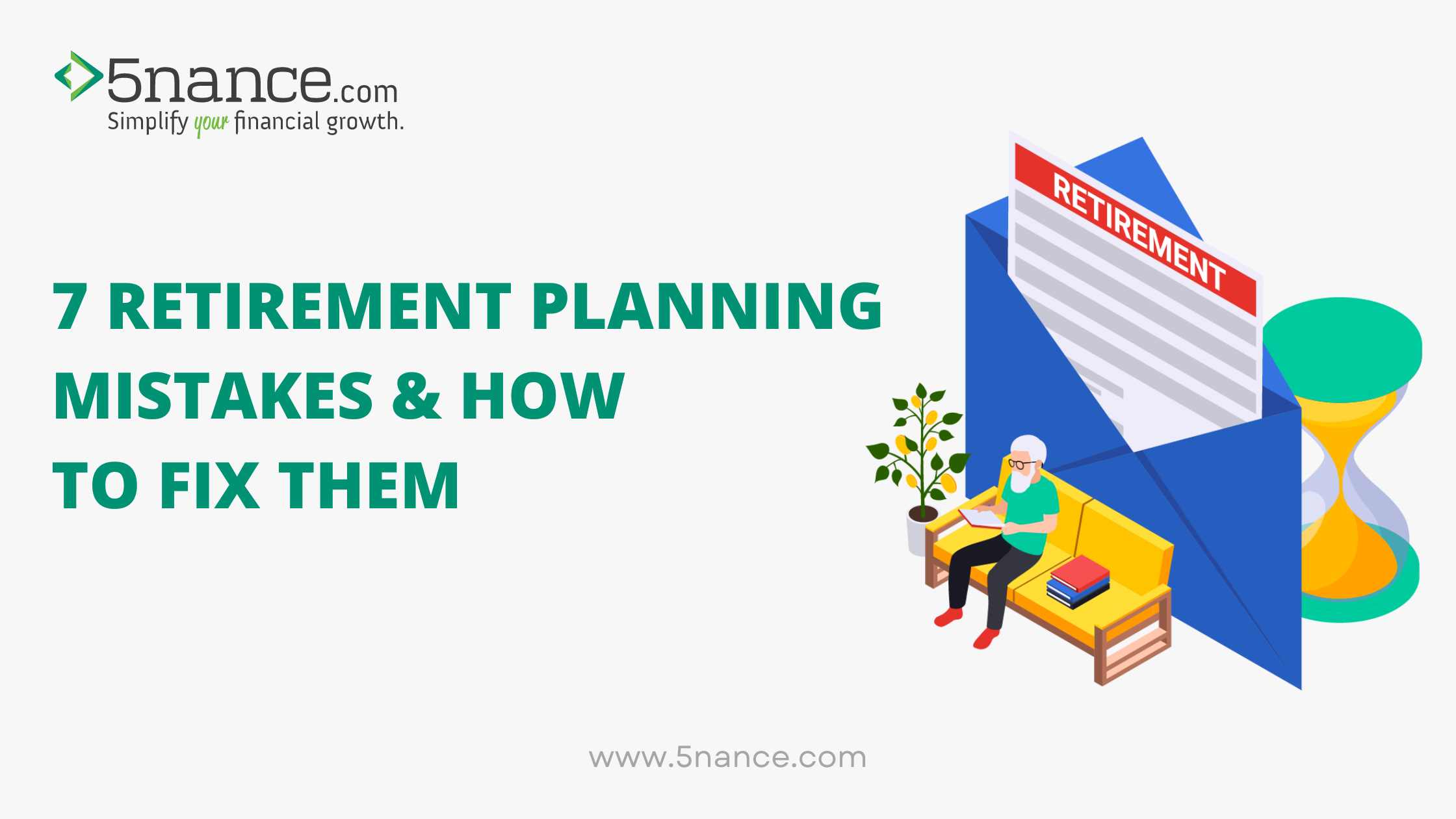 - Not seeking professional advice: Retirement planning can be complex, and seeking professional advice can help you avoid mistakes and create a solid plan for your future. Not seeking professional advice can lead to missteps in your plan and missing out on important opportunities. To fix this, consider working with a financial planning advisor like 5nance to develop a retirement plan that meets your needs.
