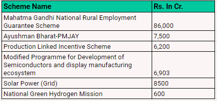 Proposed Allocation for the Major or Flagship Govt. Schemes